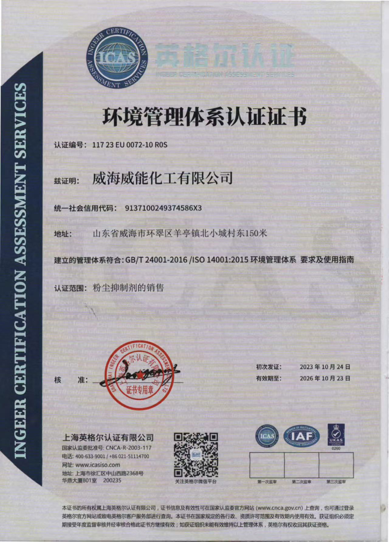 環(huán)境管理體系認(rèn)證證書